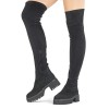 Stivali elasticizzati alti alla coscia neri, detti anche cuissardes, sono realizzati in vera pelle nera nella parte del piede, mentre la gamba è in ecopelle elasticizzata. La fodera ed il sottopiede sono in vera pelle.