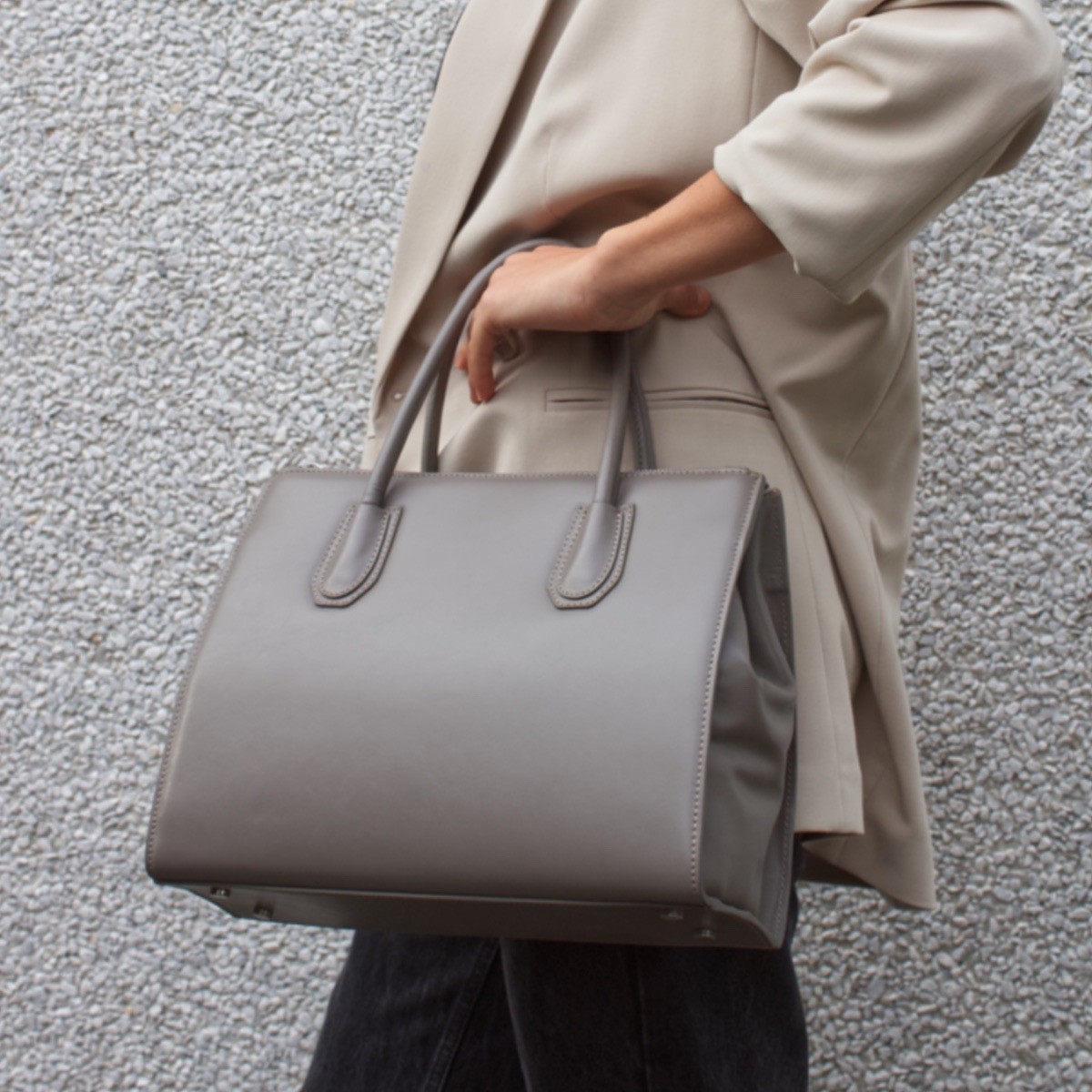 Сумочка из натуральной кожи серо-коричневого цвета.